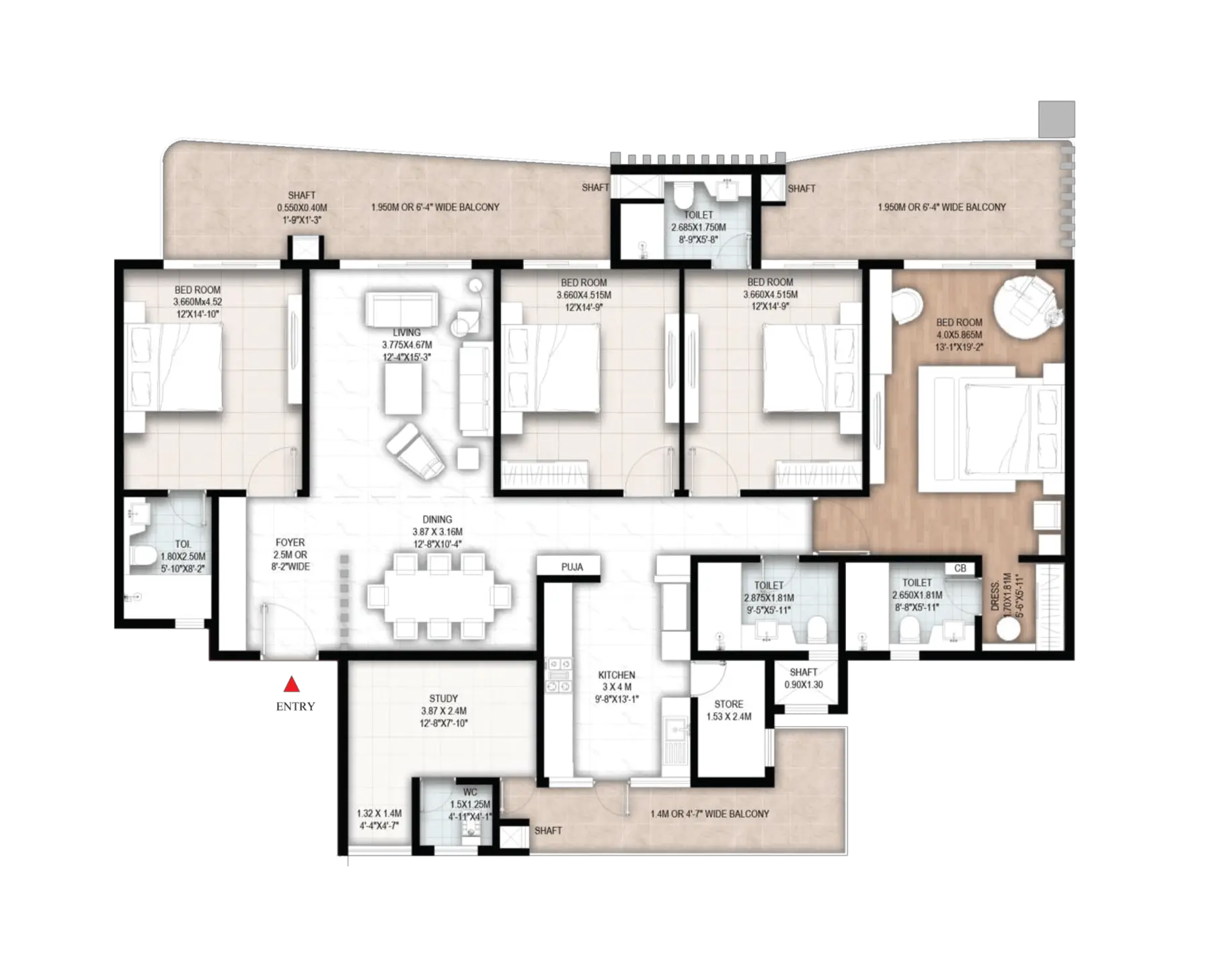 This development offers high-rise premium residences with spacious apartments, world-class amenities, and a vibrant community environment. Here you can enjoy stunning views from almost every 3BHK and 4BHK unit.